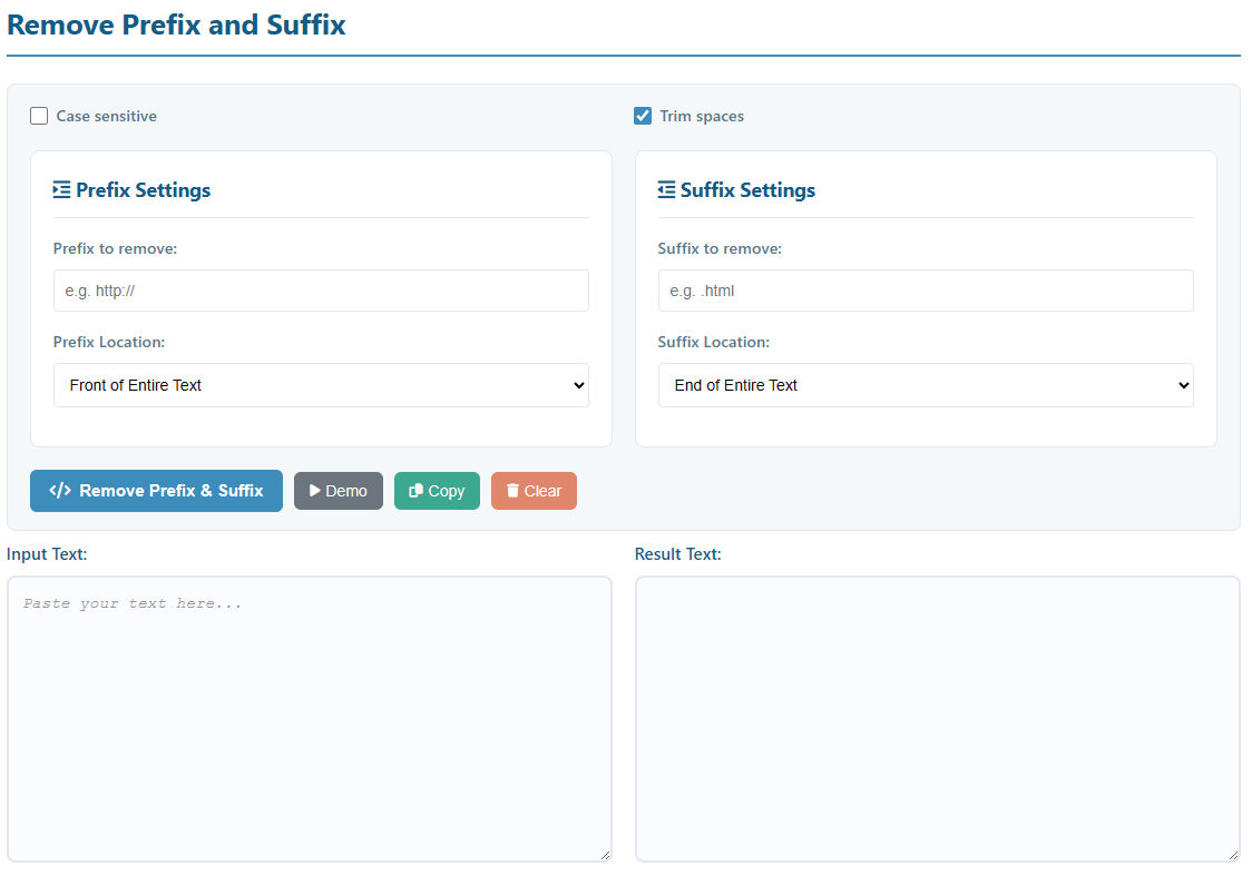 - Execute: Click Remove Prefix & Suffix and copy your result.